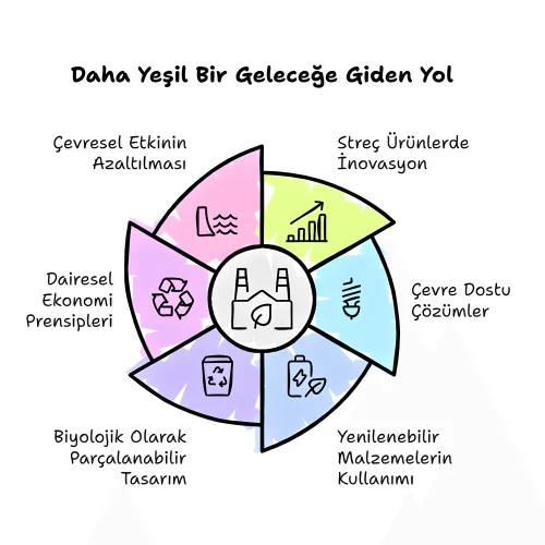 Sürdürülebilirliğe olan sarsılmaz bağlılığımız, ürün tekliflerimizden operasyonel süreçlerimize kadar her alana yansıyor. Masurasız streç ürünlerimizde sürekli yenilikler yaparak çevre dostu çözümler uyguluyor, yenilenebilir ve geri dönüştürülebilir malzemelerin kullanımını teşvik ediyoruz. Bu ürünler biyolojik olarak parçalanabilir şekilde tasarlanmış olup, döngüsel ekonomi prensipleriyle uyumludur ve ambalaj atıklarının çevresel etkisini azaltmaya katkı sağlar.